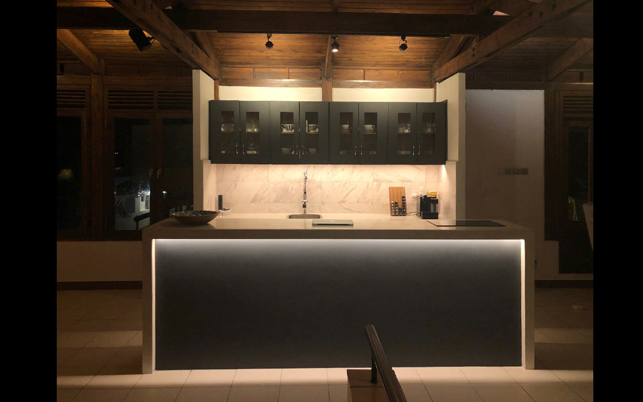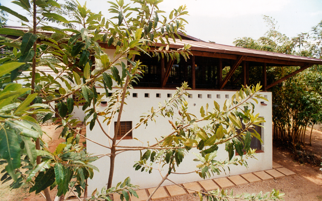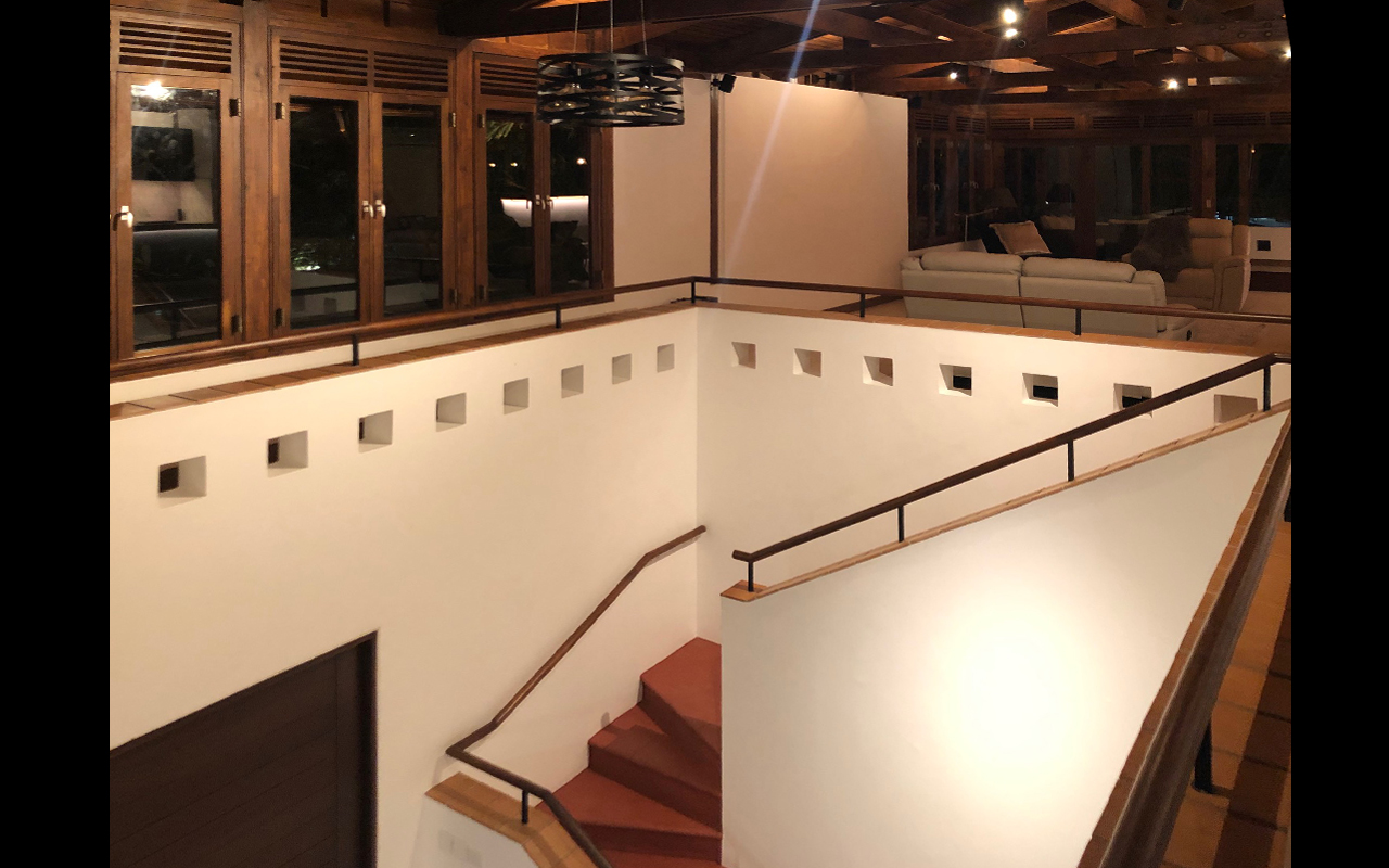 The Matthijsse family lived in a bungalow on a compound developed in the late 1970s. As the family grew and wished a large open to air and naturally ventilated living space, it was decided to extend the house vertically. However, the living, kitchen, dining, and terrace are located on the first floor, whereas the bedrooms are located on the ground floor. The living is accessed through a large hall with a void and main stairs to the first floor.