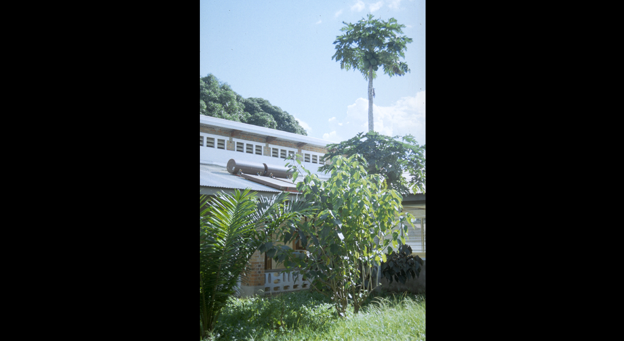 Overall, building is conceived to blend in the Peramiho townscape. A large brick coloured hipped roof; the white painted wooden façade elements and the cladding of the plinth with terracotta tiles. The balcony is carried by typical prefab Peramiho columns; balustrades made of fitted pipework. All recognisant of the surrounding built environment.